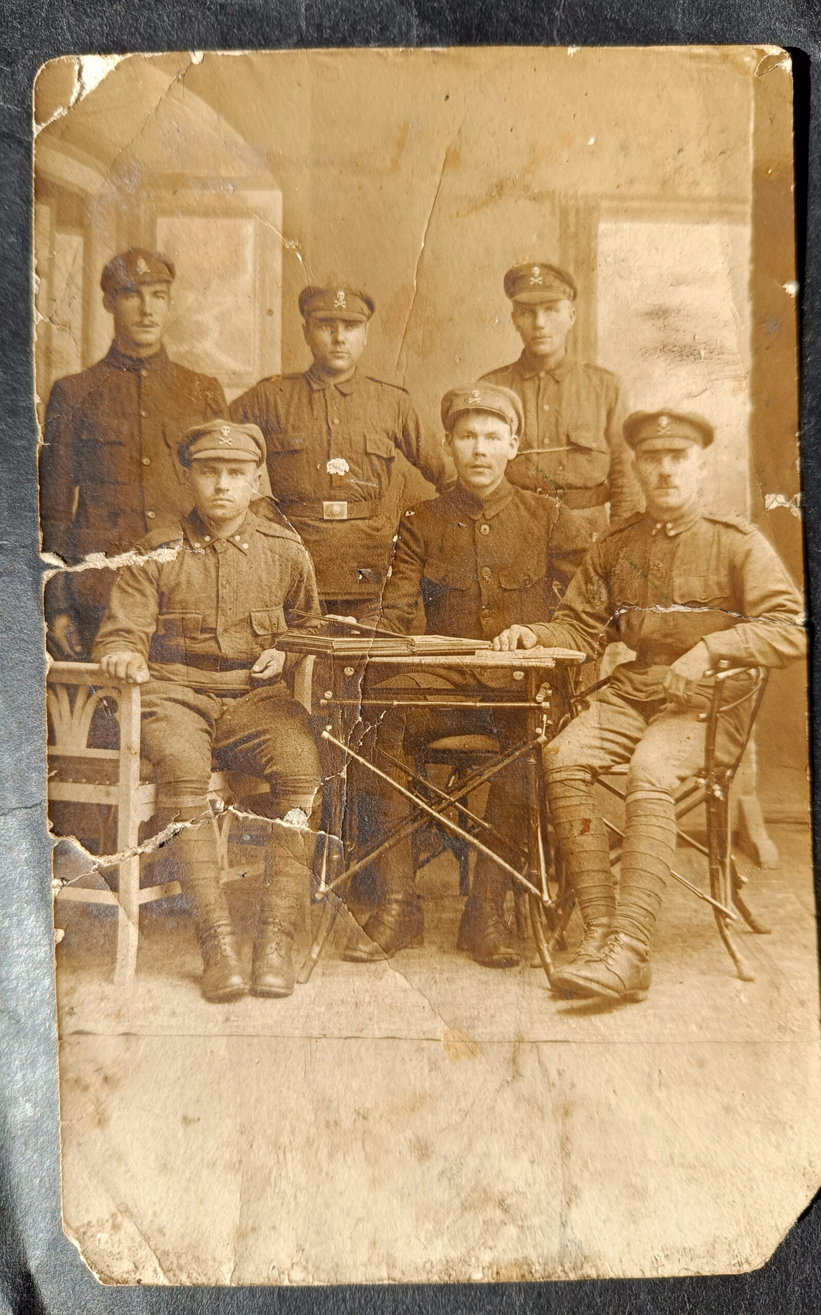 Julius Kuperjanovi Seltsi esimehe Olev Tedre hinnangul on tegemist kevad-suvega 1919, sest piltidel on kasutusel sõjaväelised tunnused (kraetärnid), mis tulid kasutusele kõnealuse aasta aprillis. Tänusõnad kõigile, kes Julius Kuperjanovi isikut kalliks peavad ja austavad oma osavõtuga tema mälestusüritusi! Kuna järgmise aasta 29. juulil möödub tema hauamonumendi avamisest sajand, saab see üritus kindlasti pidulikum ja rahvarohkem olema. Seniks huvilistele vaatamiseks ja tuvastamiseks üks ajalooline foto kuperjanovlastest. Julius Kuperjanovi Seltsi esimehe Olev Tedre hinnangul on tegemist kevad-suvega 1919, sest piltidel on kasutusel sõjaväelised tunnused (kraetärnid), mis tulid kasutusele kõnealuse aasta aprillis. Seega võib foto sõjasündmustiku taust olla Petserimaal või Lätis. Kuivõrd fotod pärinevad Muhumaalt, võivad asjaosalised Selle kandiga seotud olla. Kes neid mehi ära tunneb, palun märku anda minu meiliaadressil Aldokals2@gmailcom ja ikka pildi teemal märkusega ees või taga vasakult esimene, teine jne (vajadusel võib ka helistada telefonil 56 908 945). Teid ette tänades.