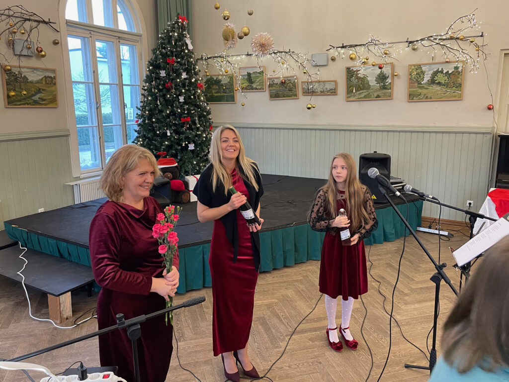 Kadi Sepp ja ja pereansambel jõululaupäeval Raeküla Vanakooli kogukonnakeskuses. Foto: Mikko Selg