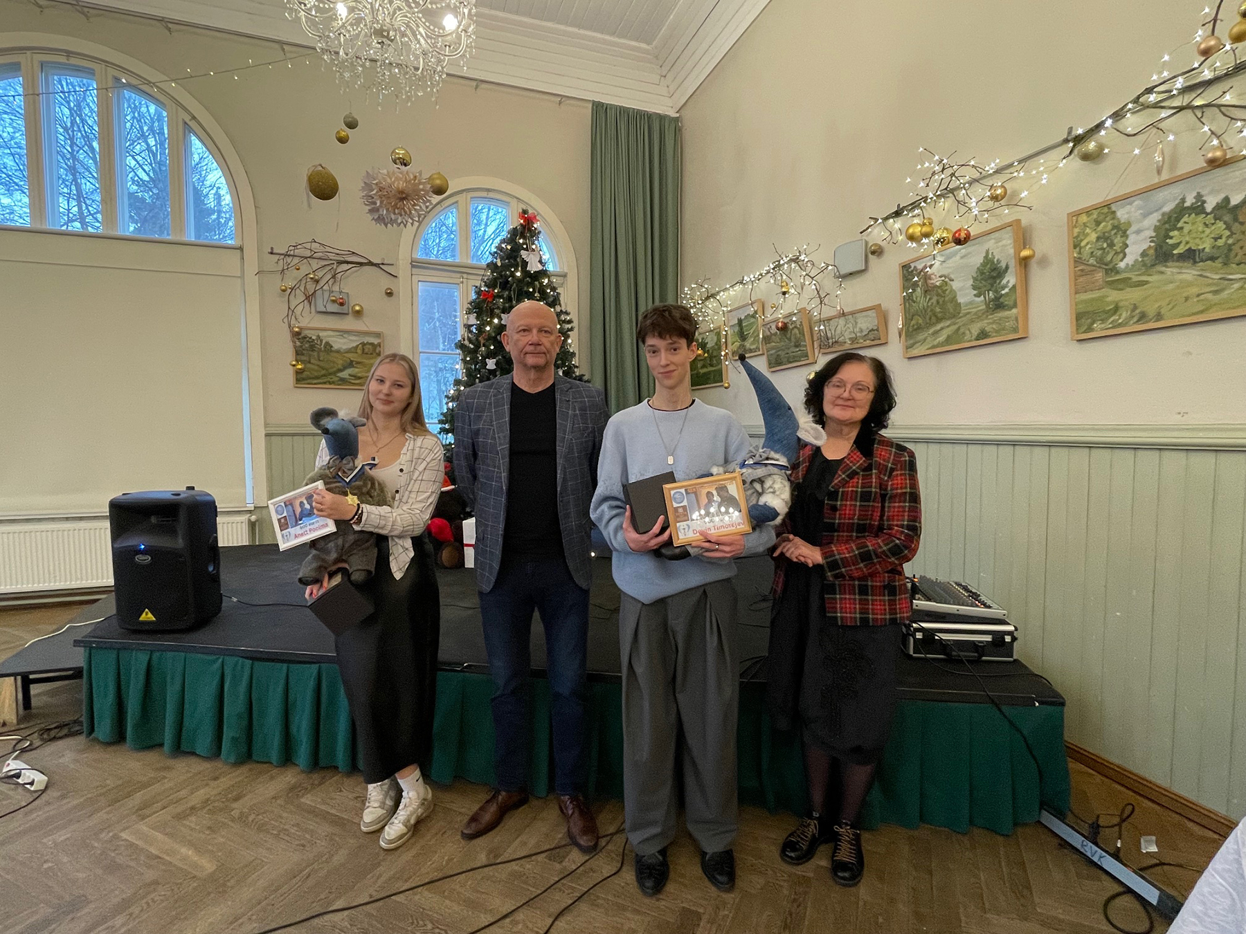 Anett Poolma, Peep Vits, Devin Timofejev ja Ene Täht Erich Rooduse kutsehariduse stipendiumi üleanmdisel, 2025. a. Foto: Mikko Selg