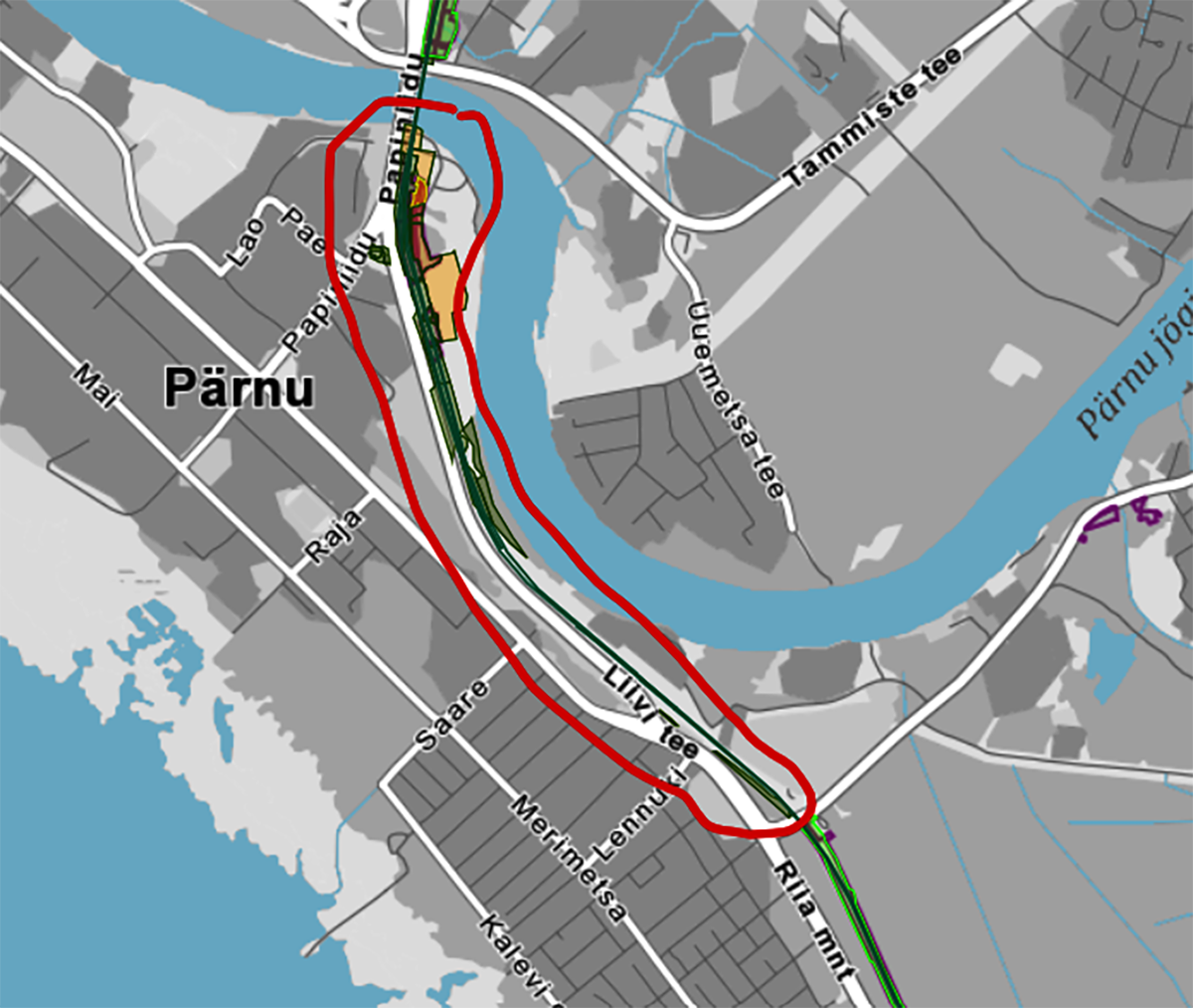 Pärnu terminali alal toimuvate raadamistööde piirkond. Allikas: Rail Baltic Estonia