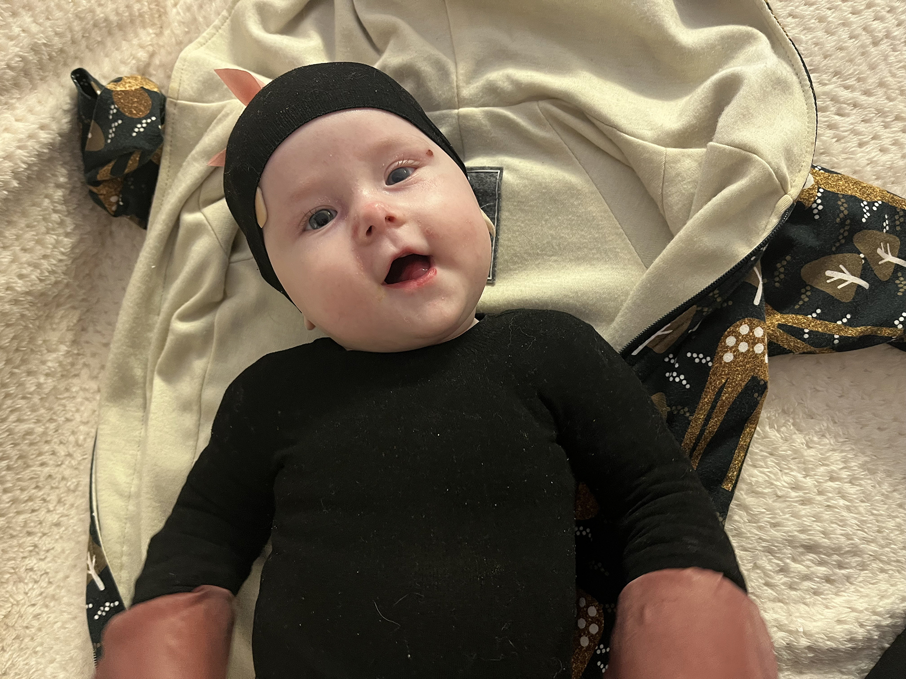 Palun aita kuuekuusel Emmal valuvabalt elada – ülikarmi nahka haarava geenihaigusega pisitüdruku ravi jätkamiseks on vaja 142 000 eurot. Fot erakogust