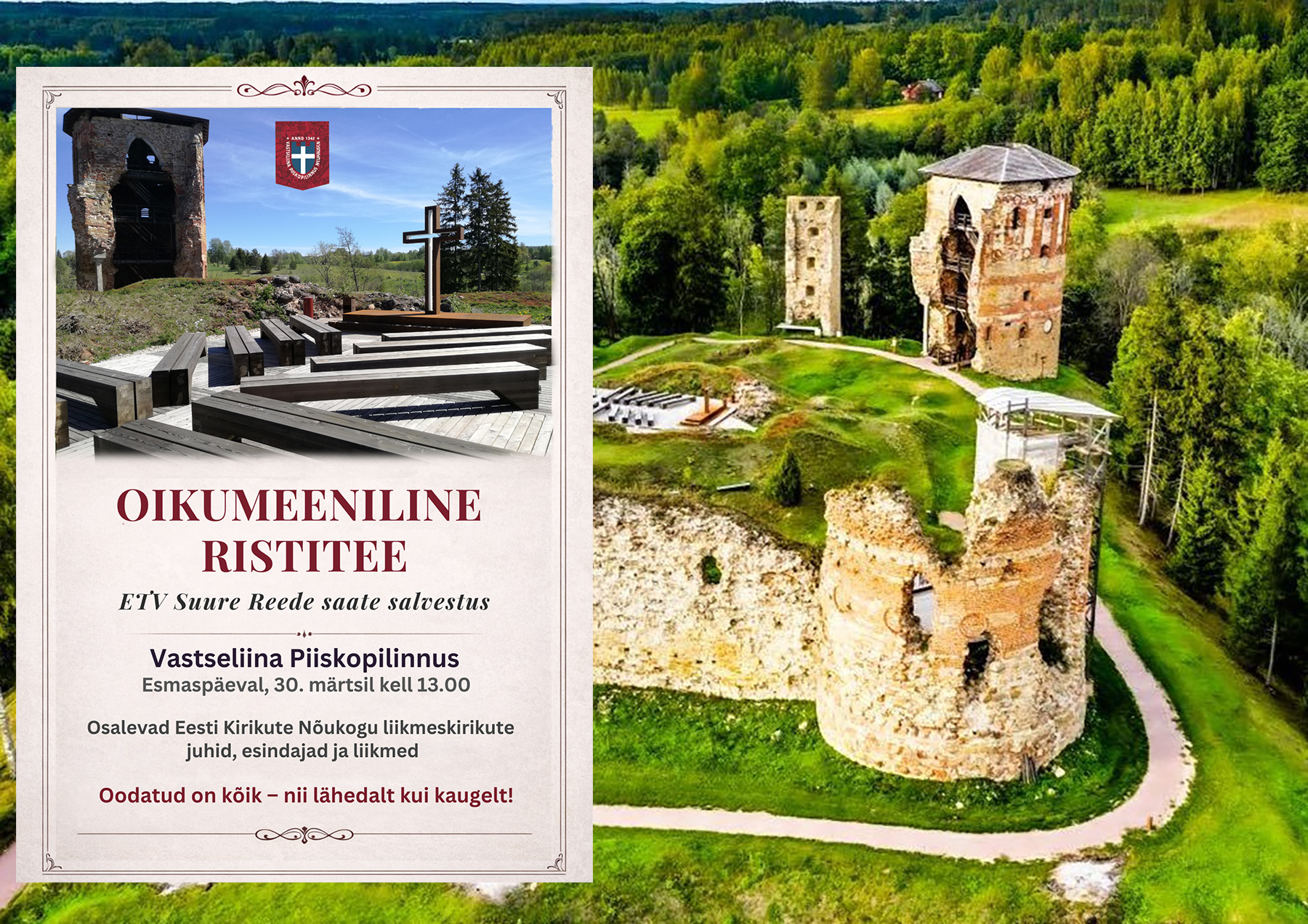 Esmaspäeval, 30. märtsil kell 13.00 toimub Võrumaal Vastseliina Piiskopilinnuse välikabelis tänavuse Suure Reede telesaate (ETV) eelsalvestus – oikumeeniline Ristitee, mis kujutab Kristuse Kolgata tee sümboolset läbimist. Saade jõuab ETV eetrisse 3. aprillil.