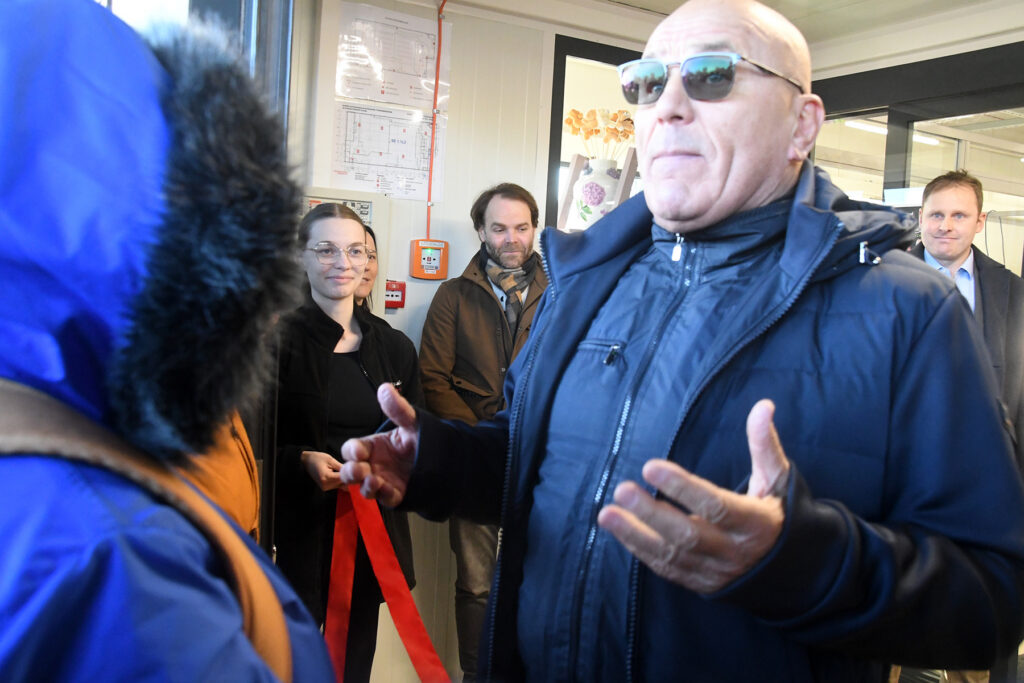 Lipu heiskavad Sindi gümnaasiumi direktor Katrin Kohjus ja gümnasist Kait Kampus.